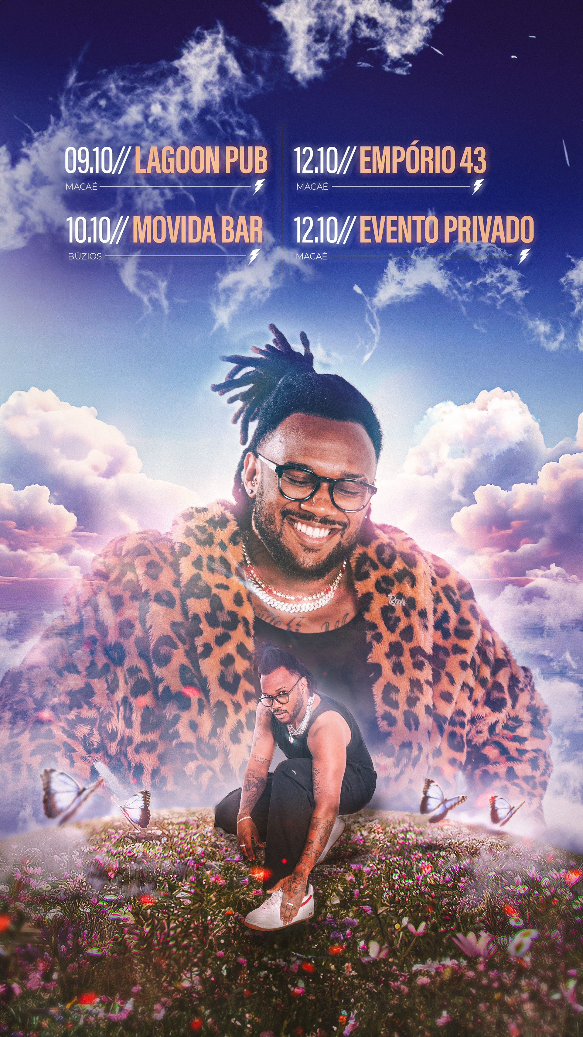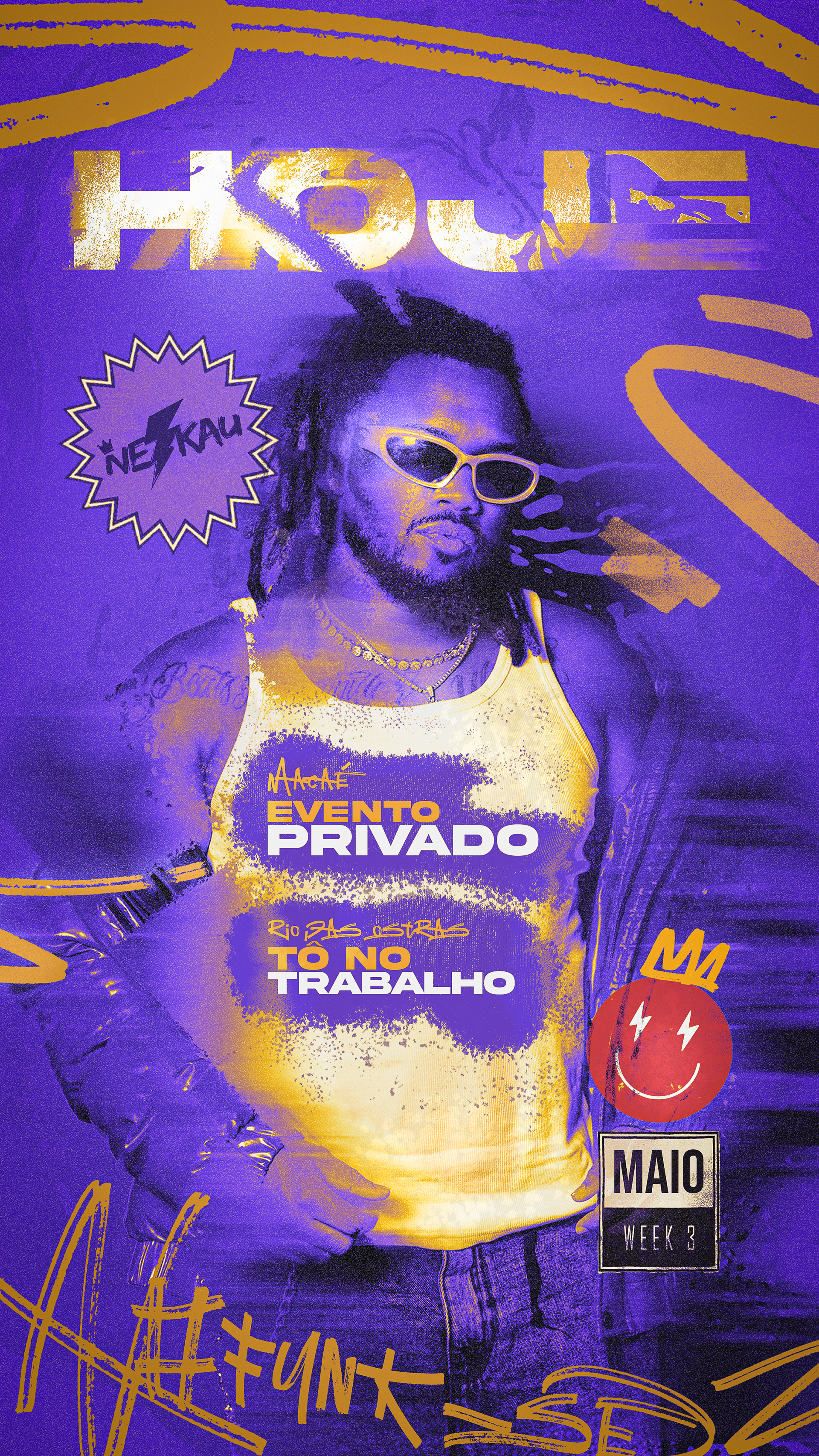 Born in macaé, a coastal city in rio de janeiro known for its natural beauty, dj neskau is one of the most respected funk djs in the region. with a high-energy style that blends funk, rap, trap, and hip-hop, he brings a unique vibe to every event. his talent and dedication have earned him recognition across the baixada litorânea and northern fluminense areas, where he’s a regular presence at the biggest parties. As a close friend, i’ve had the honor of design these compositions for his monthly agendas throughout the years, capturing the essence of his lifestyle and night street parties impact.